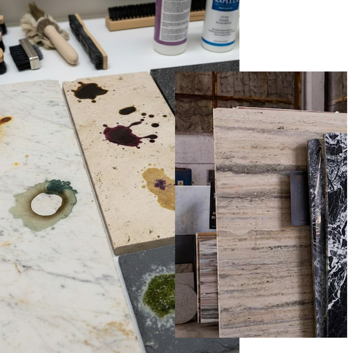 Marble and limestone, being softer stones, are especially vulnerable to staining. Granite is denser, but still absorbs oils and acidic substances over time. Citrus, vinegar, wine, and oils don’t just stain — they can also etch the surface, dulling its shine and weakening its finish.